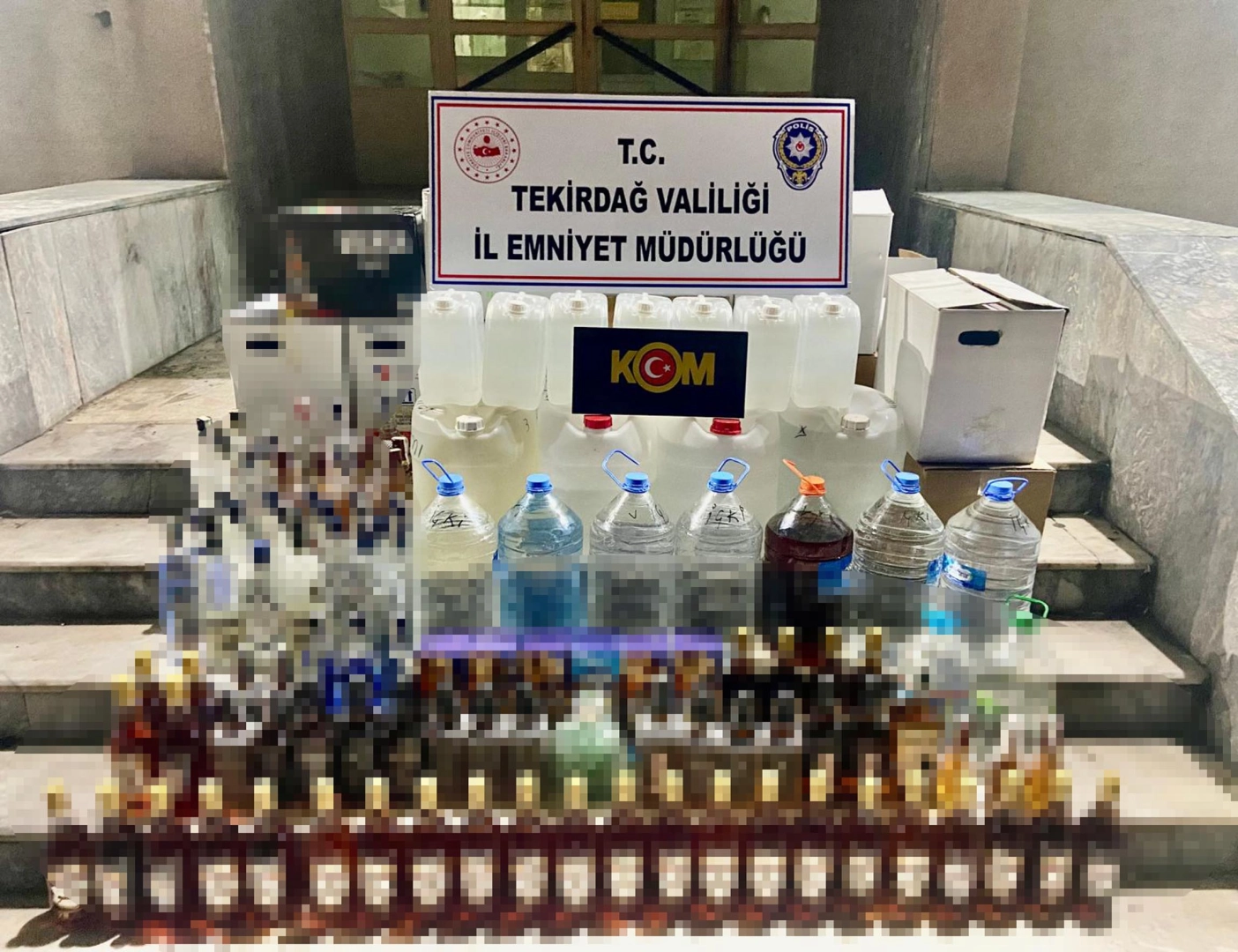 Mehmet YİRUN/TEKİRDAĞ, (DHA)- TEKİRDAĞ’ın Çorlu ilçesinde sahte içki ele geçiridi. Gözaltına alınan şüpheli tutuklandı.Çorlu İlçe Emniyet Müdürlüğü ekiplerinin sahte ve kaçak içkiye yönelik çalışmasında, bir depo ile araçta arama yaptı. Aramada, el yapımı 143 şişe rakı, votka viski, 12 litre viski, 158 litre rakı, votka, 98 litre etil alkol, 25 litre çeşitli aroma, el yapımı içki üretiminde kullanılan 4,5 litre aroma, 1062 cinsel içerikli hap, çok sayıda bandrol, şişe kapağı, kapüşon, etiket, 1010 boş şişe ele geçirildi.Gözaltına alınan 1 şüpheli, sevk edildiği adliyede çıkarıldığı mahkemede tutuklandı. (DHA)