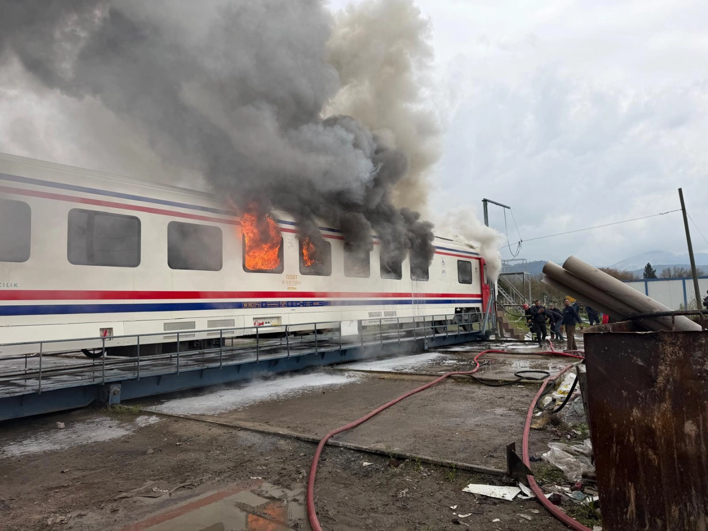 Hayrettin Mahallesi'nde bulunan vagon üretim ve revizyon tesisinde yapılan vagonda, klima elektrik sisteminden yangın çıktı. Alevler vagonu sararken, olay yerine itfaiye ekipleri sevk edildi. İtfaiyecilerin müdahalesinin ardından vagondaki yangın söndürüldü. Vagonda hasar oluştu. Yangınla ilgili inceleme başlatıldı. (DHA)