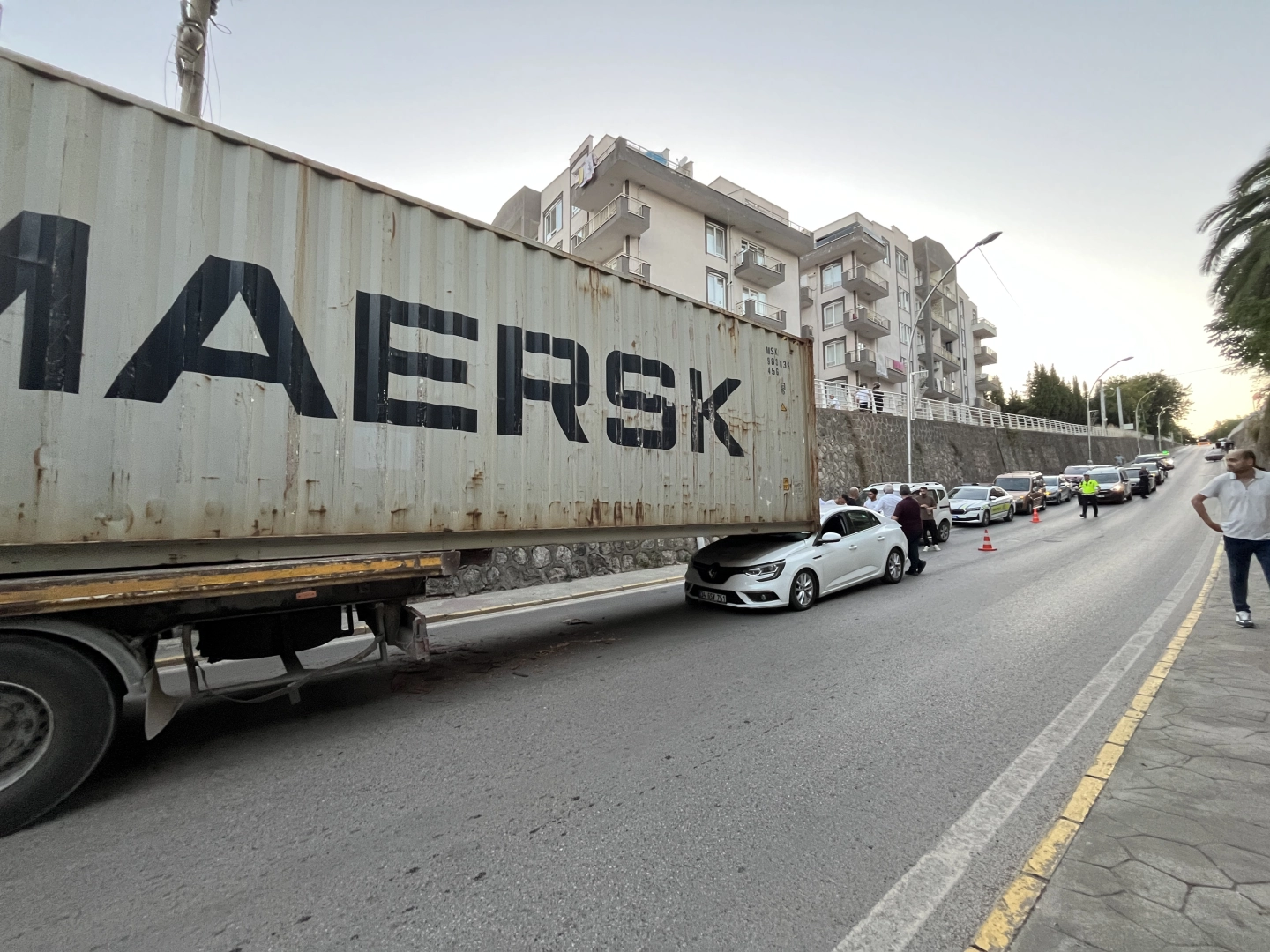 Nabi YAZICI- Ardacan UZUN/ KÖRFEZ(Kocaeli), (DHA)- KOCAELİ’nin Körfez ilçesinde rampa aşağı indiği sırada üst geçide çarpan TIR’ın doresindeki konteyner, arkadan gelen otomobilin üzerine kaydı. Araç sürücüleri kazayı yara almadan atlattı. Kaza, saat 19.30 sıralarında Güney Mahallesi Tuğrul Caddesi’nde meydana geldi. 95 Evler Sahili yönüne giden M.S. idaresindeki TIR, rampa aşağı indiği sırada dorsesinde bulunan konteyner, 3 metre 75 santimetre yüksekliğindeki üst geçide çarptı. Çarpışmanın etkisiyle dorseki konteyner, arkadan gelen K.K. yönetimindeki 34 GSV 751 plakalı otomobilin üzerine kaydı. Araç sürüleri kazayı yara almadan atlatırken, durumun bildirilmesi üzerine bölgeye polis ekipleri yönlendirildi. Polis, ekipleri caddede trafik akışını yönlendirdi. Konteynerin altında kalan otomobil ise vinç yardımıyla kurtarıldı. Polis, kazayla ilgili inceleme başlattı. (DHA) FOTOĞRAFLI