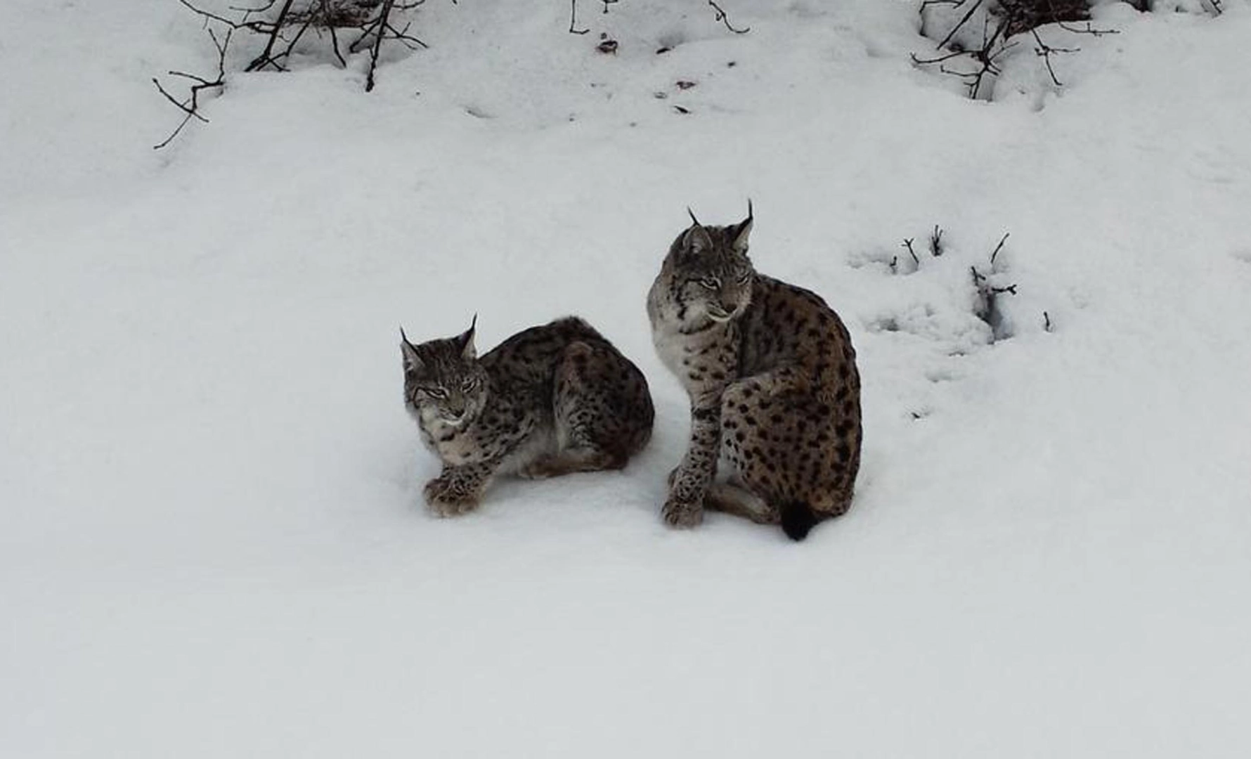 Muzaffer KOŞAN/ERZİNCAN, (DHA)- ERZİNCAN’ın Refahiye ilçesinde karlı arazide dolaşan vaşak ailesi dronla görüntülendi.