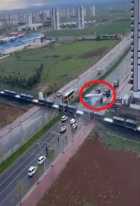 Gıyasettin TETİK-Seyfettin EKEN/DİYARBAKIR, (DHA)- DİYARBAKIR’da bariyerler kapalı iken sürücüsünün hemzemin geçitten geçmeye çalıştığı belediye otobüsüne, yük treni çarptı. Can kaybının yaşanmadığı kazada, otobüs kullanılamaz hale geldi.Kaza, sabah saatlerinde Kayapınar ilçesi Mezopotamya Bulvarı’ndaki hemzemin geçitte meydana geldi. Diyarbakır'dan Mardin Mazıdağı ilçesine giden yük treni, bariyerleri kapalı iken hemzemin geçitten geçmeye çalışan İ.K. idaresindeki 21 ANN 993 plakalı belediye otobüsüne çarptı. Kazada ölen ya da yaralanan olmazken, otobüsten dumanlar yükselmeye başladı. İhbar üzerine kaza yerine itfaiye ve polis ekipleri sevk edildi. İtfaiye ekiplerinin soğutma çalışması yaptığı otobüs, çekiciyle bulunduğu yerden kaldırıldı. Kazaya ilişkin inceleme başlatıldı. (DHA)