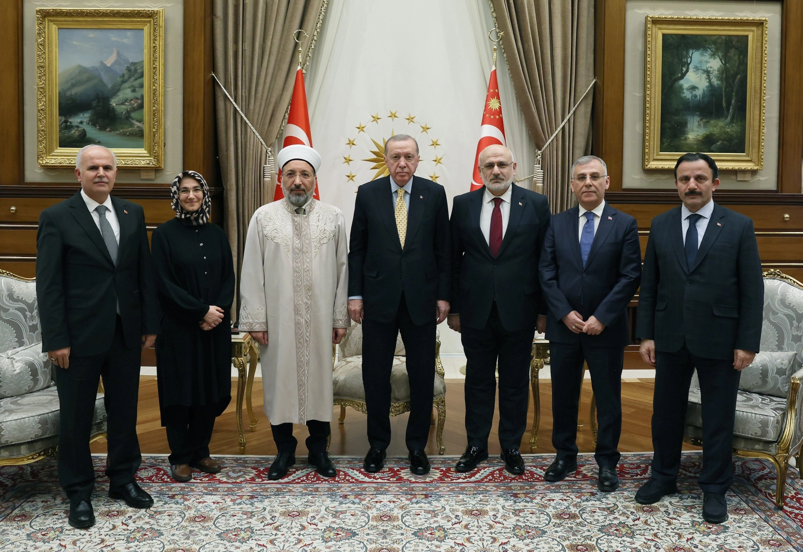 Cumhurbaşkanı Erdoğan, Diyanet İşleri Başkanı Safi Arpaguş ve beraberindeki heyeti kabul etti. Basına kapalı gerçekleşen kabulden fotoğraf paylaşıldı. (DHA)