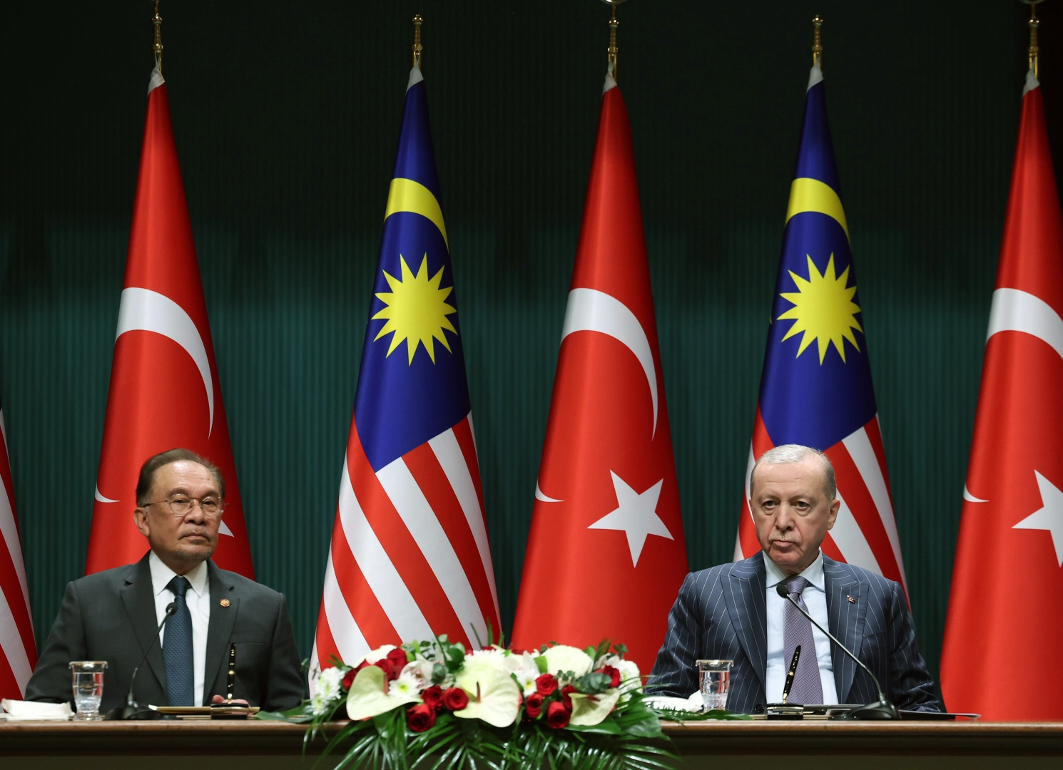 Malezya Başbakanı Enver İbrahim ise yaptığı konuşmada, "Biz sizin yeteneklerinize, kapasitenize ve gücünüze inanıyoruz. Türk halkının kapasitesine, Türk sanayinin bilim ve teknoloji konusundaki kapasitesine inanıyoruz. Bu bütün dünyaya yeteneklerini kanıtlamış ve göstermiş bir ülke. Bu vesileyle, ilişkilerimizi, ticareti ve yatırımı genişletmeye ve artırmaya devam edeceğiz. 10 milyar dolar hiçbir zaman iddialı bir hedef değil. Çok büyük bir ekonominiz var. Bizim de daha göreceli olarak küçük ama büyüyen bir ekonomimiz var. Biz şu anda yarı iletkenler konusunda çok önemli bir merkez haline geldik. Bu anlamda yeni teknolojiler konusunda da çalışmalarımızı sürdürüyoruz. Bu tür bir iş birliği son derece anlamlı olacaktır" ifadelerini kullandı.
