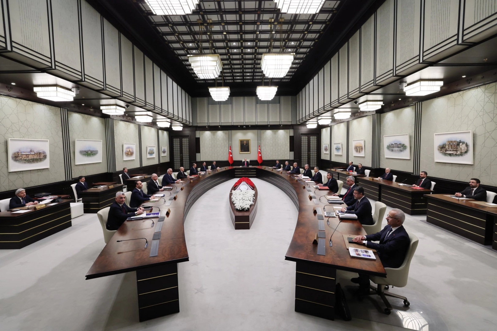 Aybala MELEK/ANKARA, (DHA)- CUMHURBAŞKANLIĞI Kabinesi, Cumhurbaşkanı Recep Tayyip Erdoğan başkanlığında toplandı.Cumhurbaşkanlığı Külliyesi'nde gerçekleştirilen Kabine Toplantısı, saat 15.21'de başladı. Cumhurbaşkanı Erdoğan başkanlığındaki toplantıda, 'Terörsüz Türkiye' hedefi, enflasyonla mücadele, Suriye ve Gazze'deki son gelişmelerin ele alınacağı belirtildi. Toplantı sonrası Cumhurbaşkanı Erdoğan'ın açıklama yapması bekleniyor. (DHA)