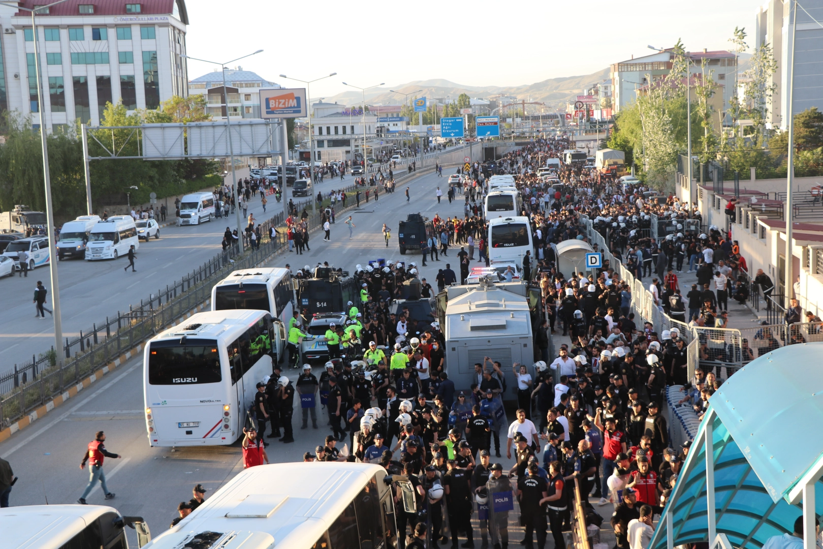 Behçet DALMAZ/VAN, (DHA)-STAD: Atatürk Şehir StadyumuHAKEMLAR: Çağdaş Altay, Selim Şenöz, Arif Dilmeç, Tolga AkbabaVANSPOR FK: Abdulsamet Damlu, Harun Kavaklıdere (Dk. 80 Hasan Bilal), Emre Batuhan Adıgüzel, Okan Eken, Mert Örnek (Dk. 89 Ahmet Eren), Eyüp Akcan, Muhammet Ensar Çavuşoğlu, Özkan Yiğiter, Bekir Can Kara (Dk. 80 Serkan Odabaşoğlu), Sabahattin Destici, Burak KavlakÇİMENTAŞ ELAZIĞSPOR: Mummer Zülfikar Yıldırım, Muhammet Ömer Çakı, (Dk. 89 Hasan Ekici), Ercan Coşkun, Kerim Frei, Yusuf Mert Tunç, Maksut Taşkıran, Yağızcan Erdem (Dk. 89 Mehmet Ablay), Alpay Koldaş, Mikail Koçak, Berşan Yavuzay, Fuat BaukGOLLER: Bekir Can Kara( Dk.25), Harun Kavaklıdere (Dk. 44), Özcan Yiğiten (Dk.48), Okan Eken (Dk.64 penaltı) (Vanspor), Maksut Taşkıran (DK.70) (Çimentaş Elazığspor)SARI KARTLAR: E. Seçgin (Van Spor- yedek kulübesinde), Muhammet Ömer Çakı (Çimentaş Elazığspor)KIRMIZI KART: Berşan Yavuzay (Dk.87 Çimentaş Elazığspor)Vanspor Futbol Kulübü, TFF 2. Lig Kırmızı Grup Play-Off yarı final maçında evinde ağırladığı Çimentaş Elazığ Spor'u 4-1 yenerek rövanş öncesinde büyük bir avantaj sağladı. Kırmızı-siyahlı ekip, maçın başlamasıyla birlikte rakip takıma karşı üstünlük sağladı. Ev sahibi takım, 25. dakikada Bekir Can Kara'nın attığı golle 1-0 öne geçti. Dakikalar ilerledikçe Vanspor'un baskısı ve atakları arttı. 44. dakikada Harun Kavaklıdere'nin kaydettiği golle Vanspor ilk yarı 2-0 önde kapattı. İkinci yarıda rakip takıma karşı daha baskılı oynayan ev sahibi Van Spor, 48. dakikada Özcan Yiğiter'in golüyle farkı 3’e çıkardı. Van Spor'un son golünü ise 64’üncü dakikada penaltıdan Okan Eken kaydetti. Rakip takımın tek golü ise 70. dakikada Maksut Taşkıran'dan geldi. Maç, 4-1 Van Spor'un üstünlüğüyle sona erdi. Maçın ardından sporcular ve yöneticiler, saha içinde galibiyeti kutlarken, takımlarını yalnız bırakmayan binlerce taraftar, kent merkezinde araçlarla korna çalıp galibiyeti kutladı. Halayların çekildiği kutlamalar, yaklaşık 1,5 saat sürdü. Bu galibiyetle Vanspor, play-off rövanş maçı öncesinde büyük bir avantaj elde etti. Kırmızı-beyazlı ekip, rövanş maçında da iyi bir performans sergileyerek adını bir üst tura yazdırmayı hedefliyor. (DHA)GÖRÜNTÜ DÖKÜMÜ-----------------------------Maça gelen taraftarlar-Sahaya çıkan her iki takımın futbolcuları-Maç sonrası galibiyeti kutlayan Van spor futbolcuları-Maç sonrası galibiyet turları atan taraftarlar-DetaylarGÖRÜNTÜLER'VAN' KLASÖRÜNE GEÇİLECEK.