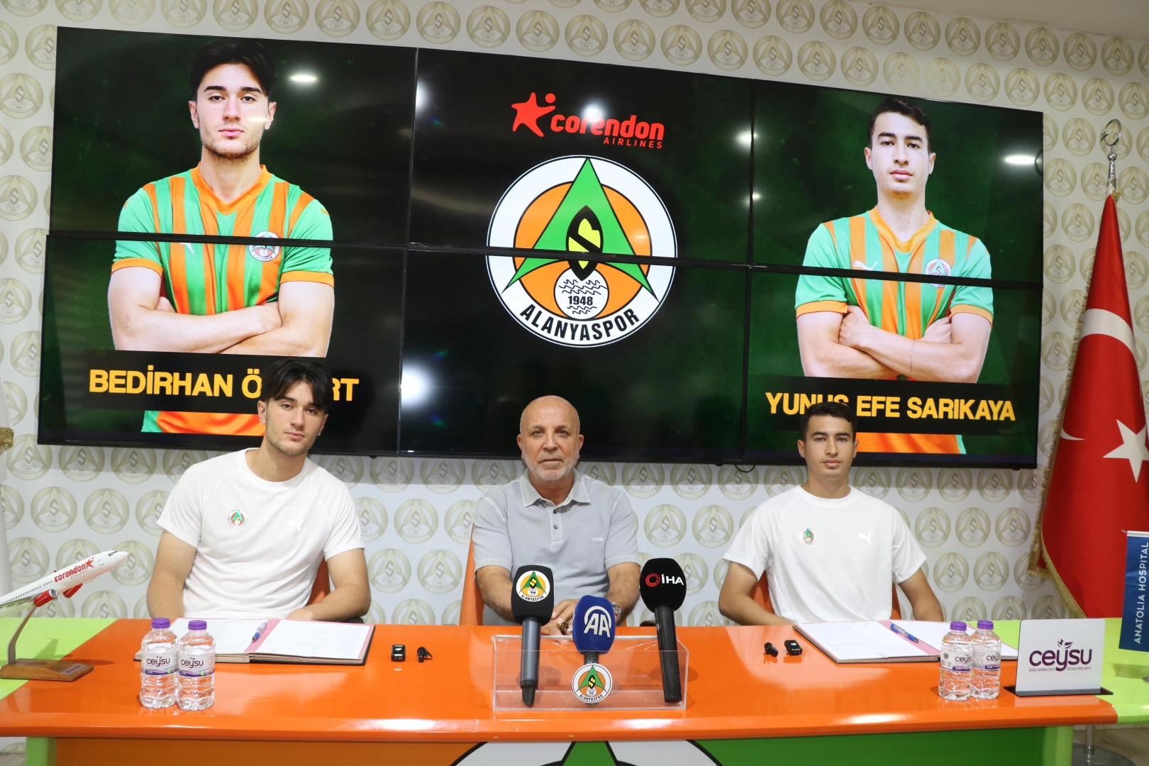 Erkan UYSAL/ALANYA (Antalya), (DHA)- SÜPER Lig ekiplerinden Alanyaspor, Başakşehir FK'dan 22 yaşındaki defans oyuncusu Bedirhan Özyurt, Altay'dan 19 yaşındaki defans oyuncusu Yunus Efe Sarıkaya'yı 5 yıllık sözleşmeyle renklerine bağladı.Alanyaspor, Bedirhan Özyurt ile Yunus Efe Sarıkaya için Cengiz Aydoğan Tesisleri'nde imza töreni düzenledi. Törende konuşan Kulüp Başkanı Hasan Çavuşoğlu, "Kulübümüz genç yeteneklere önem veriyor. Özellikle takip ettiğimiz oyunculara ağırlık veriyoruz. Gençlerin son yıllarda Alanyaspor'u tercih etmesi, gelmesi bizim için çok önemli. Bunlardan Bedirhan, Başakşehir kulübünden geldi. Biri de Yunus, Altay'dan geldi. Tabii ikisi de gelecek vadeden futbolcular. İnanıyorum ki Alanya'da kendilerini geliştirip daha iyi yerlere gelip, daha faydalı olacaklarına inandığımız futbolcular. Burada başarılı olacaklarına inandıkları için ve bütün futbolcuların ve genç futbolcuların burada önünün açıldığını görebiliyorlar. Tabi altyapıdan oyuncu çıkarmak hem de genç yetenekleri alıp kulübümüzde daha iyi yerlere getirip, daha iyi kulüplere gönderme projelerimiz, hedefimiz, amacımız" diye konuştu.Törende Bedirhan Özyurt, "Öncelikle başkanıma ve yönetime bu konuda çok teşekkür ediyorum. Buraya geldiğim için çok mutluyum. Süper Lig'in çok büyük kulüplerinden olan Alanyaspor'a hizmet etmek benim için büyük bir onur olacak" dedi. Yunus Efe Sarıkaya ise "Büyük bir camiaya geldim. Burada elimden ne geliyorsa fazlasını vereceğime söz veriyorum. Herkese tekrar teşekkür ederim" diye konuştu. (DHA)(FOTOĞRAFLI)