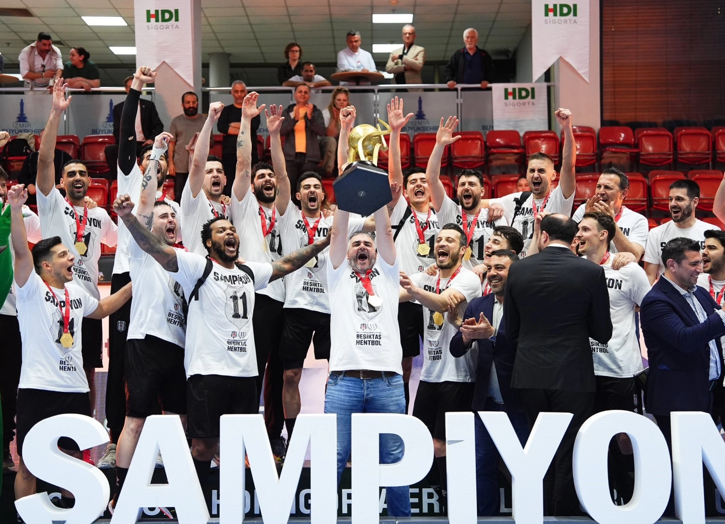 İZMİR, (DHA)- HENTBOL Erkekler Türkiye Kupası'nda şampiyonluk Beşiktaş'ın oldu. Celal Atik Spor Salonu'nda Beykoz Belediyesi ile karşı karşıya gelen siyah-beyazlılar rakibini 34-23 yenmeyi başardı ve kupanın sahibi oldu. Beşiktaş maçın ilk devresini de 19-10 galip tamamladı. Siyah-beyazlılar maç sonunda kupa mutluluğunu büyük bir coşkuyla kutladı.