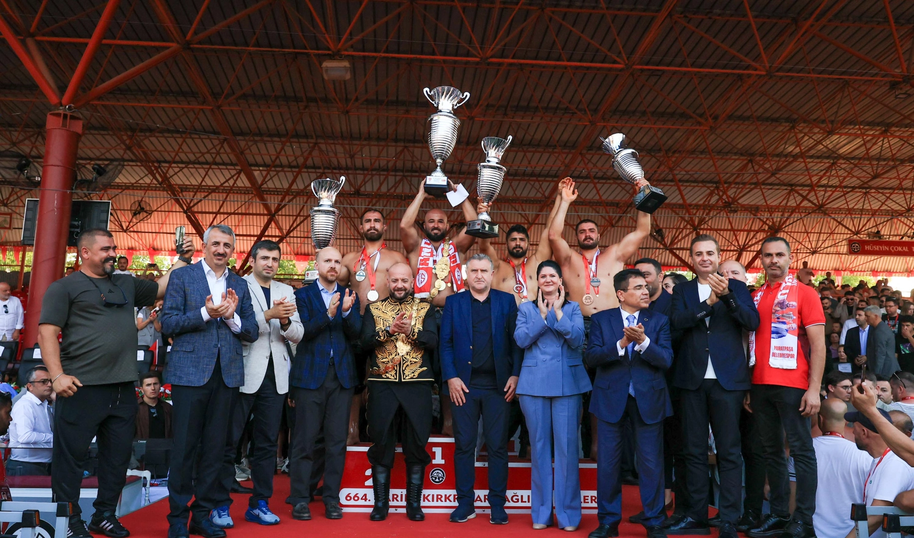 Olgay GÜLER - Umut IŞIK / EDİRNE, (DHA)- EDİRNE'de gerçekleştirilen 664'üncü Tarihi Kırkpınar Yağlı Güreşleri'nde, 4 günün ardından 14 boy ile birlikte en iyi peşrevde dereceye giren 59 pehlivan belli oldu. Pehlivanlar, ödüllerini Sarayiçi Er Meydanı'nda düzenlenen törenle aldı.Türkiye Geleneksel Güreşler Federasyonu tarafından düzenlenen CV Enerji Yağlı Güreş Ligi'nde, 14 boyda en çok puanı toplayan 826 pehlivan, 664’üncü Tarihi Kırkpınar Yağlı Güreşleri'nde maç yapmaya hak kazandı. Güreşçilerden 752'sinin kayıt yaptırdığı Kırkpınar Yağlı Güreşleri'nde 4 günlük maç takvimi sona erdi ve dereceye girenler belli oldu.Minik-1: 1. Muhammed Ferit Çilenker, 2. Turgut Tuğra Arı, 3. Mehmet Efe Şen, 3. Emir AliMinik-2: 1. Nasup Epçin, 2. Yusuf Ziya Ataçoğlu, 3. Ahmet Tığlı, 3. Ömer Said DuranTeşvik-1: 1. İsmet Emir, 2. Müsab Ümeir Kılıç, 3. Ömer Nacı, 3. Mustafa ÇelikerTeşvik-2: 1. Aydıncan Gümüşdağ, 2. Mustafa Şeref Özgül, 3. Rüstem Öztürk, 3. Emirhan YükselTozkoparan: 1. İbrahim Balta, 2. Hamza Yakup Oran, 3. Poyraz Bilgin, 3. İsmail ErkoçAyak: 1. Can Ergen, 2. Sualp Yılmaz, 3. Volkan Bilgin, 3. Zeki Alp BulutDeste Küçük: 1. Selahattin Can, 2. Ferhat Duman, 3. Kerem Berk Akdağ, 3. Teyfik GülterDeste Orta: 1. Barış Kemal Yiğit, 2. Hüseyin Çakır, 3. Şahin Dur, 3. Muhammet Berat DuranDeste Büyük Boy: 1. Caner Arslan, 2. Özer Özgür Arslan, 3. Alperen Düzenci, 3. İsmail Sait IşıklıKüçük Orta Küçük: 1. Mikrail Bilen, 2. Berk Avcı, 3. Berkay Bülüç, 3. İsa İnceKüçük Orta Büyük: 1. Serhat Göçmez, 2. Hüseyin Coşkun, 3. Oğuzhan Öztürk, 3. Ömer BulutBüyük Orta: 1. Yusuf İslam Taş, 2. Oktay Güngör, 3. Ahmet Han Yıldız, 3. Ömer Faruk KıratBaşaltı: 1. Celal Bayar Çilenker, 2. Tufan Güzel, 3. Abdulferik Öner, 3. Onur SusuzBaş: 1. Orhan Okulu, 2. Feyzullah Aktürk, 3. Enes Doğan, 3. Ali İhsan BatmazEn İyi Peşrev: 1. Yiğit Kartal, 2. Serkan Üğdüler, 3. Burak Altıok, 3. Kerem Berk AkdağDereceye giren başpehlivanlara ödülleri Gençlik ve Spor Bakanı Osman Aşkın Bak tarafından verildi. Dereceye giren diğer pehlivanlara ödülleri Edirne Valisi Yunus Sezer, Edirne Belediye Başkanı Filiz Gencan Akın, İYİ Parti Genel Başkanı Musavvat Dervişoğlu, Dünya Etnospor Birliği Başkanı Bilal Erdoğan, Bayraktar Yönetim Kurulu Başkanı Selçuk Bayraktar, milletvekilleri ve belediye başkanları tarafından verildi. Öte yandan 664’üncü Tarihi Kırkpınar’da başpehlivanlık boyunda birinci olan Orhan Okulu’ya güreşlerde uzatmaya gitmeden rakibini yendiği için Türkiye Geleneksel Güreşler Federasyonu Başkanı İbrahim Türkiş’in aldığı kararla 1 milyon lira para ödülü verildi. (FOTOĞRAFLI)