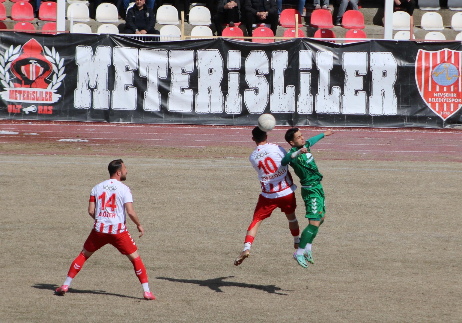 Ahmet KORKMAZER/NEVŞEHİR, (DHA)STAT: GaziHAKEMLER: Demokrat Özgür Güneş, Selami Dursun, Mustafa SertNEVŞEHİR BELEDİYESPOR: Gürkan, Tolga (Dk. 40 Batuhan), İsmail, İbrahim, Serhan, Ahmet (Dk.80 Göktuğ), Mehmet (Dk. 63. Alaattin), Hüseyin (Dk. 40 Serdar), Alihan, Musa, Taha, (Dk. 15 Recep), (Dk. 63 Murat)AMASYASPOR: Serkan, Muhammed, Deniz (Dk. 72 Ahmed), Oğuzhan (Dk. 90 1 Enes), Erçin, Yunus (Dk. 90 7 Alihan), Aslan, Buğra, Hakan, Burak (Dk. 46 Hasan), Batuhan (Dk. 53 Berkay)SARI KARTLAR: Recep, Ahmet, Alaattin, Mehmet (Nevşehir Belediyespor), Yunus (Amasyaspor)KIRMIZI KART: Hakan Olkan (Amasyaspor)GOLLER: Dk. 42 Ahmet, Dk. 90 6 Musa (Nevşehir Belediyespor), Dk. 17 Batuhan Er, Dk. 36 Tolgahan (KK) (Amasyaspor)3'üncü Lig 2'nci Grup'ta mücadele eden Nevşehir Belediyespor, evinde ağırladığı Amasyaspor ile 2-2 berabere kaldı. (DHA)