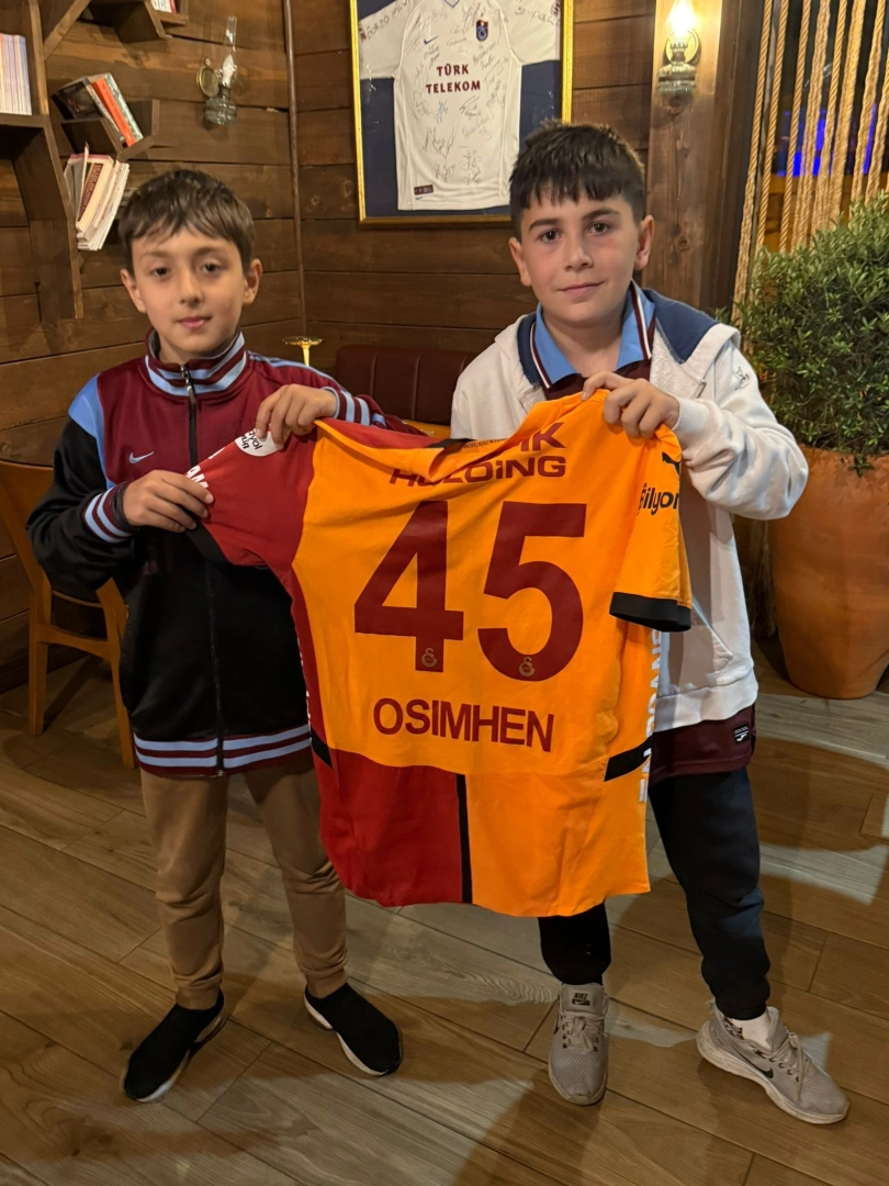Serhan TÜRK / TRABZON, (DHA)- SÜPER Lig’in 35’inci haftasında Galatasaray deplasmanda Trabzonspor’u 2-0 mağlup etti. Karşılaşmanın ardından 11 yaşındaki Trabzonspor taraftarı Mert Yılmaz, sarı-kırmızılı ekibin Nijeryalı golcüsü Victor Osimhen’den maçta giydiği formasını aldı. Küçük taraftar, Osimhen’in formasını karşılaşma için Almanya’nın Bremen kentinden Trabzon’a gelen Şahin Karaarslan’a verdi. Osimhen’in formasını alan Şahin Karaarslan, “Almanya, Bremen’den maç için geldim. Osimhen formasını kaçırmak istemedim. Koleksiyonum için alıyorum” dedi.11 yaşındaki Mert Yılmaz ise “Maçtan sonra Osimhen bana baktı. Çağırdım, yanıma gelip, verdi. Ben formayı gösterdim, o da verdi” diye konuştu.(FOTOĞRAFLI)