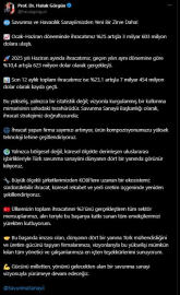 Ruken KADIOĞLU/ANKARA, (DHA)- SAVUNMA Sanayii Başkanı Haluk Görgün, savunma ve havacılık sanayi ihracatının haziran ayında geçen yılın aynı dönemine göre yüzde 10,4 artarak 623 milyon dolar olarak gerçekleştiğini duyurdu.Savunma Sanayii Başkanı Görgün, sosyal medya hesabından yaptığı açıklamada, savunma ve havacılık sanayi ihracatında yeni zirvenin gerçekleştiğini belirterek, "Ocak-haziran döneminde ihracatımız yüzde 25 artışla 3 milyar 603 milyon dolara ulaştı. 2025 yılı haziran ayında ihracatımız, geçen yılın aynı dönemine göre yüzde 10,4 artışla 623 milyon dolar olarak gerçekleşti. Son 12 aylık toplam ihracatımız ise yüzde 23,1 artışla 7 milyar 454 milyon dolar olarak kayda geçti" dedi.'TÜRK SAVUNMA SANAYİNİ DÜNYANIN DÖRT BİR YANINDA GÖRÜNÜR KILIYORUZ'Bu yükselişin yalnızca bir istatistik değil; vizyonla kurgulanmış bir kalkınma mimarisinin sahadaki tezahürü olduğunu belirten Görgün, "Savunma Sanayii Başkanlığı olarak, ihracat stratejimiz doğrultusunda; ihracat yapan firma sayımızı artırıyor, ürün kompozisyonumuzu yüksek teknoloji lehine çeşitlendiriyoruz. Yalnızca bölgesel değil, küresel ölçekte derinleşen uluslararası iş birlikleriyle Türk savunma sanayini dünyanın dört bir yanında görünür kılıyoruz. Büyük ölçekli şirketlerimizden KOBİ’lere uzanan bir ekosistemi; sürdürülebilir ihracat, küresel rekabet ve yerli üretim üçgeninde yeniden şekillendiriyoruz. Ülkemizin toplam ihracatının yüzde 3'ünü gerçekleştiren tüm sektör mensuplarımızı, alın teriyle bu başarıya katkı sunan tüm emekçilerimizi yürekten kutluyorum. Bu başarıda imzası olan, dünyanın dört bir yanına Türk mühendisliğini ve üretim gücünü taşıyan firmalarımıza, vizyonlarıyla bu yükselişi mümkün kılan tüm yönetici ve çalışanlarımıza en içten teşekkürlerimi sunuyorum. Gücünü milletten, yönünü gelecekten alan bir savunma sanayi vizyonuyla yürümeye devam edeceğiz" açıklamasında bulundu. (DHA)