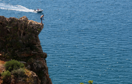 İrem GÜNEYBAZ/ANTALYA (DHA)- ANTALYA Konyaaltı sahilinde 30 metrelik falezlere çıkan genç, denize tehlikeli atlayış gerçekleştirdi. Sırt üstü suya çakılınca hareketsiz kalıp arkadaşları tarafından denizden çıkarılan gencin durumunun iyi olduğu öğrenildi.Olay, öğle saatlerinde Konyaaltı sahilinde meydana geldi. Denize giren gruptan biri, 30 metrelik falezlerin en yüksek noktasına çıktı. Atlayış öncesi uzun süre hazırlanan genç, arkadaşlarının ısrarı ve tezahüratı eşliğinde kendini denize bıraktı. Sırt üstü suya çarpan bu kişi, çarpmanın etkisiyle kısa süre sonra denizde hareketsiz kaldı.Durumu fark eden arkadaşları hemen yardıma koştu. Sudan çıkarılan genç, arkadaşları tarafından kıyıya çıkarıldı. O sırada bazı kişiler “Ambulans çağırın" diye bağırdı. Gencin sağlık durumunun iyi olduğu öğrenildi. (DHA)