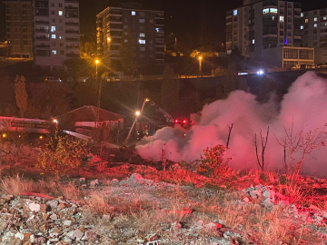 Kadircan GÜLER- Mehmet Gökhan HAKBİLİR/ ANKARA, (DHA)- ANKARA'nın Altındağ ilçesinde açık alanda bulunan palet deposunda çıkan yangın, yan tarafta bulunan eve sıçradı. Olay yerine çok sayıda itfaiye ekibi sevk edilirken, yangın kontrol altına alındı. Yangın, gece saatlerinde Altındağ ilçesine bağlı Başpınar Mahallesi 1069'uncu Sokakta bulunan boş arsada depolanan ahşap paletlerde çıktı. Ahşap paletlerin depolandığı alanda çıkan yangında alevler, rüzgarın da etkisiyle yan taraftaki eve sıçradı. Yangını görenlerin ihbarı üzerine olay yerine çok sayıda itfaiye ve polis ekibi sevk edildi. Polis ekipleri çevrede güvenlik önlemleri alırken, itfaiye ekipleri yangına müdahale etti. Yangın nedeniyle bölge yoğun duman ile kaplandı. Ekiplerin müdahalesinin ardından yangın kontrol altına alınırken, soğutma çalışmaları devam ediyor. Alevlerin sıçradığı evde bulunan 2 kişinin yangın büyümeden dışarı çıktıkları öğrenildi. Yangının çıkış nedeniyle ilgili inceleme başlatıldı. (DHA)