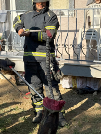 Apartmanın bahçesine giren Kafkas burunlu engerek yılanını itfaiye ekipleri yakaladı