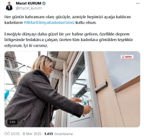 Bakan Kurum'dan 'Dünya Kadınlar Günü' paylaşımı