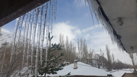 Başkale'de evlerin çatılarında buz sarkıtları oluştu