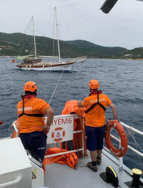 Bodrum'da su alan ve içerisinde 3 kişinin bulunduğu tekne kurtarıldı