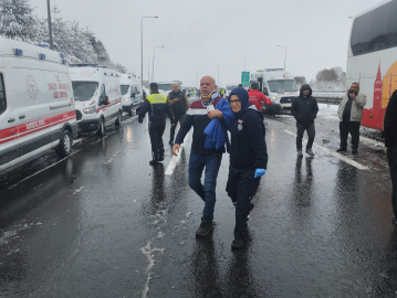 Mutlu YUCA-Zübeyde ÖZMEN/BOLU, (DHA)- BOLU’da Anadolu Otoyolu’nda karlı havada 8 aracın karıştığı zincirleme kazada 10 kişi yaralandı. Kaza nedeniyle otoyolun İstanbul yönü ulaşıma kapandı.Kaza, saat 14.00 sıralarında Anadolu Otoyolu’nun Bolu Dağı Elmalık mevkisinde meydana geldi. İstanbul yönüne giden 4 otomobil, hafif ticari araç, yolcu otobüsü, kamyon ve TIR, karlı havada zincirleme kazaya karıştı. Kazada 10 kişi yaralandı. Yoldan geçen diğer sürücülerin ihbarı üzerine kaza yerine sağlık, jandarma ve itfaiye ekipleri sevk edildi. Kaza nedeniyle yolun İstanbul yönü ulaşıma kapandı. Yaralılar, sağlık ekibinin ilk müdahalesi sonrası çevredeki hastanelere kaldırıldı.Yolun trafiğe açılması için ekiplerin çalışmaları sürüyor. (DHA)