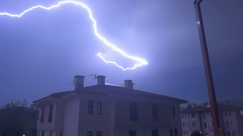 Bolu'da yıldırım düşme anları kameralarda