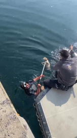 Denize düşen kediyi kurtarmak için ortak operasyon