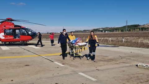 Gıyasettin TETİK-Selim KAYA/DİYARBAKIR, (DHA)- DİYARBAKIR'ın Kulp ilçesinde kalça kemiği kırılan Talia Zengin (77), ambulans helikopterle hastaneye ulaştırıldı.Kulp ilçesinde Talia Zengin, evde yürüdüğü sırada dengesini kaybedip düştü. Kulp Dr. Abdullah Biroğul İlçe Devlet Hastanesi'ne kaldırılan ve kalça kemiğinin kırıldığı tespit edilen Zengin'in Diyarbakır'a sevki istendi. Acil Sağlık Hizmetleri'ne bağlı 'Sağlık komuta' ile yapılan görüşmelerin ardından İl Sağlık Müdürlüğü'nden talep edilen ambulans helikopter, kısa sürede ilçeye ulaştı. Helikoptere alınan Zengin, Dicle Üniversitesi Hastanesi'nin helikopter pistinde bekleyen sağlık ekibine teslim edildi. Zengin, ambulansla Dicle Üniversitesi Hastanesi'ne kaldırıldı. (DHA)