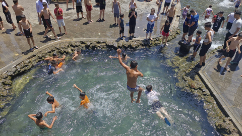 Diyarbakır’da çocukların süs havuzunda tehlikeli serinliği