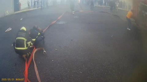 KASK KAMERASI GÖRÜNTÜLERİ ORTAYA ÇIKTIDiyarbakır’ın Kayapınar ilçesindeki Birtane Oto Sanayi Sitesi’nde faaliyet gösteren balata spreyi üretimi yapılan iş yerinde meydana gelen patlama sonrası çıkan yangında, bir itfaiye erinin alevlere müdahale ettiği anlara ait kask kamerası görüntüleri ortaya çıktı. Görüntülerde, itfaiye ekiplerinin iş yerinin kepenklerinin önünde hazırlık yaptığı, daha sonra iş yeri kepenklerinin altından başlayarak yangına müdahale ettiği anlar yer aldı. (DHA)Özcan ARGİN/ DİYARBAKIR, (DHA)