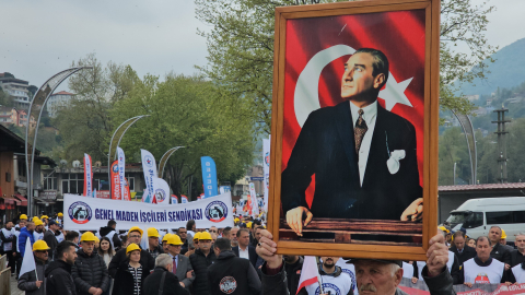 Ali Sencer ARSLAN/ZONGULDAK, (DHA)- ZONGULDAK’ta 1 Mayıs Emek ve Dayanışma Günü’nde madenciler, emekliler, öğrenciler, memurlar, taraftar grupları ve siyasi parti üyeleri yürüyüş yaptı. Kent merkezinde yapılan yürüyüş nedeniyle 5 kilometreye varan araç kuyruğu oluştu.‘Emeğin başkenti’ olarak bilinen Zonguldak’ta 1 Mayıs Emek ve Dayanışma Günü etkinlikleri kapsamında Genel Maden İşçileri Sendikası’na (GMİS) üye madenciler, emekliler, üniversite öğrencileri, memur ve işçi sendikaları üyeleri, siyasi parti mensupları saat 11.00’de İstasyon Caddesi’nde bir araya geldi. Polis ekipleri ise güvenlik önlemi aldı. Saat 12.00’de yürüyüşe başlayan binden fazla kişi için Zonguldak- Ankara yolu trafiğe kapatıldı. Yürüyüş başladığı zaman yolda olan sürücüler ise kontak kapatarak beklemek zorunda kaldı. Sürücülerin 1 saat süren bekleyişi nedeniyle Ankara yönünde 2 kilometre, İstanbul yönünde 3 kilometre araç kuyruğu oluştu. Kortejin ana yoldaki kavşağı geçmesiyle trafik yeniden normale döndü.MADENCİLER BARETLERİNİ YERE VURDUGMİS kortejinde bir araya gelen maden işçileri, ‘Yaşasın 1 Mayıs’ sloganı atarak baretlerini yere vurdu. Yürüyüşün öncülüğü yapan madenciler aynı zamanda, ‘Gruplu çalışma istemiyoruz’ sloganları attı.EMEKLİ KADIN, TEKERLEKLİ SANDALYESİYLE GELDİTüm Emekliler Sendikası üyesi bir kadın ise tekerlekli sandalyesiyle kortej geçişine katılıp sendikasının bayrağını taşıdı. Üniversite öğrencileri, kentte 10 Kasım 2023’te yanmış cesedi bulunan kaçak bir ocakta madencilik yapan Afganistan uyruklu Vezir Mohammad Nourtani’nin fotoğrafını da taşıdı. Yürüyüş, Madenci Anıtı’nda sona ererken gruplar, şarkılar söyleyip sloganlar attı. Program, düzenleme komitesi üyelerinin konuşmalarıyla devam etti. (DHA)