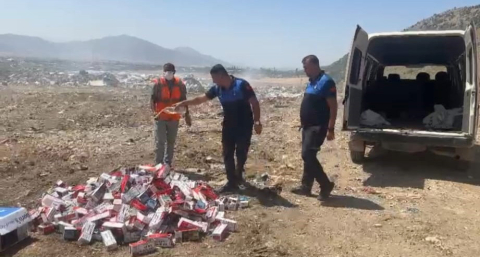Gaziantep'te ele geçirilen kaçak sigaralar yakılarak imha edildi