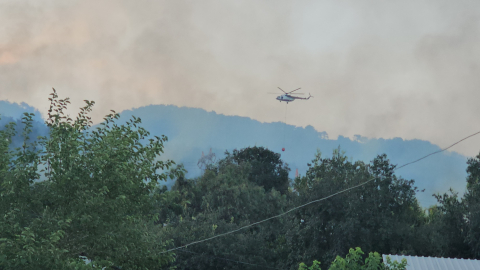 Gökhan KESKİNCİ-Yusuf YILDIZ/DÖRTYOL(Hatay),(DHA)- HATAY'ın Dörtyol ilçesinde dün başlayan orman yangını, ikinci gününde devam ediyor. Akşam saatlerinde ara verilen havadan müdahale ise günün aydınlanmasıyla yeniden başlandı.İlçedeki Çökek Yaylası Kırmızıburun mevkiinde dün saat 16.30 sıralarında orman yangını çıktı. Alevleri görenlerin ihbarıyla Orman Bölge Müdürlüğü'ne ait çok sayıda arazöz, itfaiye ve orman işçisi sevk edildi. Ekipler, yangının kontrol altına alınması için çalışma başlattı. Bugün gece saatlerinde rüzgarın da etkisiyle büyüyen yangın, Payas ilçesinde yerleşim yerlerinin yakınına kadar yayıldı. İkinci günüde devam eden söndürme çalışmalarında gece boyunca 9 yaylada 920 ev boşaltıldı, bin 870 vatandaş tahliye edildi. HAVADAN MÜDAHALE TEKRAR BAŞLADI404 araç ve bin 100 personel ile karadan sürdürülen çalışmalara günün aydınlanması ile havadan tekrar başlandı. Ekiplerin bölgedeki söndürme çalışmaları devam ederken, rüzgarın etkisinin düşmesiyle yangının yayılma hızının yavaşladığı öğrenildi. (DHA)