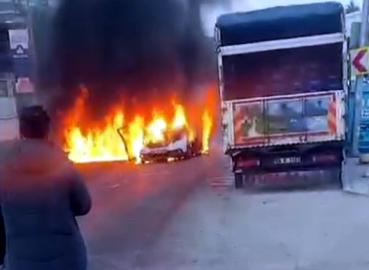 İhsan DÖRTKARDEŞ/İSTANBUL, (DHA)- AVCILAR'da henüz bilinmeyen bir nedenle yanmaya başlayan otomobil, bir anda hareket ederek park halindeki 7 araca çarptı. Ölen ya da yaralananın olmadığı yangında otomobil kullanılmaz hale gelirken o anlar çevredekilerin cep telefonu kamerasıyla kaydedildi. Olay, Ambarlı Mahallesi Reşitpaşa Caddesi'nde saat 07.30 sıralarında meydana geldi. Serap P. yönetimindeki 34 YK 3996 plakalı otomobil, Ormanlı caddesi girişinde henüz bilinmeyen bir sebeple yanmaya başladı. Sürücüsünün aracı durdurarak bagajdaki yangın tüpüyle alevlere müdahale etmeye çalıştığı otomobil, hareket etmeye başlayarak park halinde olan 34 GZE 218, 34 FHH 845, 34 MPA 821, 34 LOR 836, 34 KE 9084, 34 LKR 683 ve 34 LAK 747 plakalı araçlara çarptı. Çevredekilerin ihbarı üzerine itfaiye, polis ve sağlık ekipleri olay yerine sevk edildi. İtfaiye ekiplerinin müdahale ettiği otomobil alev alev yanarak metal yığınına döndü. Yangın nedeniyle trafiğe bir süre kapanan yol araçların kaldırılmasıyla tekrar açılırken yangında ölen ya da yaralanan olmadı. O anları çevredekiler cep telefonu kamerasıyla kaydetti. Olayı gören Fikret Perkel, “Araba yanarak birkaç arabaya çarparak geldi" dedi. (DHA)