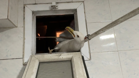 İstanbul- Avcılar'da havalandırma boşluğunda mahsur kalan martı kurtarıldı