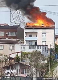 Baran AKKAYA / İSTANBUL, (DHA) - BAŞAKŞEHİR Güvercintepe mahallesi İpekyolu Caddesinde bulunan 2 katlı binada iddiaya göre, işçilerin çatı tamiri yaptığı sırada yangın çıktı. Yangında 1 kişi yaralandı. İtfaiye ekiplerinin müdahalesiyle yangın kontrol altına alındı. (DHA)