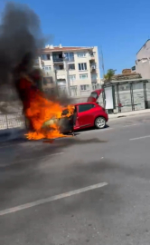 İstanbul- Fatih'te seyir halindeki otomobil alev alev yandı