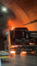 İstanbul- Sabiha Gökçen Havalimanı Tüneli'nde TIR yangını -1