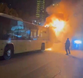 Emre KURT/İSTANBUL,(DHA)- ŞİŞLİ Büyükdere Caddesi'nde seyir halindeki İETT otobüsünde yangın çıktı. Çevredekiler alevlere yangın tüpü ile müdahale ederken, otobüsü saran alevler itfaiye tarafından söndürüldü.Yangın, saat 23.00 sıralarında Büyükdere Caddesi'nde Beşiktaş istikametine seyir halindeki 34 HO 2497 plakalı İETT bünyesindeki özel halk otobüsünde henüz bilinmeyen bir nedenle çıktı. Otobüsten yükselen dumanları fark eden trafikteki diğer sürücülerin uyarısı üzerine otobüs şoförü aracı emniyet şeridine çekti. Otobüsün motor kısmından yükselen alevler kısa sürede büyüdü. Olay yerine ihbar üzerine polis ve itfaiye ekipleri sevk edildi. Çevredeki vatandaşların, alev alev yanan otobüse yangın tüpüyle yaptıkları müdahale yetersiz kalırken, olay yerine ulaşan itfaiye ekiplerinin müdahalesiyle yangın kontrol altına alınarak söndürüldü. Otobüste yolcu bulunmadığı öğrenilirken, otobüs kullanılamaz hale geldi. Yangın nedeniyle bölgede trafik yoğunluğu oluşurken, otobüsün kaldırılmasının ardından ulaşım normale döndü. Olayla ilgili inceleme başlatıldı. (DHA)
