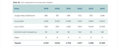 İbrahim YILDIZ / İSTANBUL, (DHA)- SİVİL Havacılık Genel Müdürlüğü (SHGM) yolcu hakları koordinatörlüğü verilerine göre 2024 yılında toplam 27 bin 490 yolcu şikayet başvurusu yaptı. Bunların başında sefer iptalleri ve rötarlar geliyor.Türkiye'deki havalimanlarında yolcu sayıları gün geçtikçe artmaya devam ederken, 2024 yılında rötar ve iptal şikayetlerinde de artış gözlemlendi. Verilere göre SHGM Yolcu Hakları Koordinatörlüğüne; 1 Ocak- 31 Aralık 2024 tarihleri arasında posta ile 153; çevrimiçi form ile 21 bin 593, Bimtakip ile 89; Cimer ile 5 bin 655 olmak üzere toplam 27 bin 490 başvuru yapıldı.YOLCU ŞİKAYETLERİ 2024 YILINDA 3 KAT ARTTISHGM'ye 2024 yılında çevrimiçi formla yapılan şikayet konuları ve dağılımı da yayımlandı. Verilere göre söz konusu yılda uçağa kabul edilmeme bin 388, uçuş iptali 6 bin 604, uçak tehiri 13 bin 463, alt üst sınıfa yerleştirme 138 kişi şikayet başvurusu yaptı. 2024 yılında çevrimiçi formuna yapılan toplam şikayet sayısı 21 bin 593 olurken, bu rakam 2023 yılında 7 bin 499 olarak kayıtlara geçti.RÖTAR YAPAN HAVAYOLU ŞİRKETİ YOLCUYA TAZMİNAT ÖDÜYORSHGM'nin Havayolu ile Seyahat Eden Yolcuların Haklarına Dair Yönetmelik'in (SHY-YOLCU) 3'üncü maddesinin birinci fıkrasının (a) bendindeki değişiklik resmi gazetede daha önce yayımlanmıştı. Yayımlanan değişikliğe göre, uçuşların teknik ve operasyonel nedenlerle tehir edilmesi ve yolcunun planlanan son varış yerine 3 saat ve daha fazla sürede ulaştırılması halinde, havayolu şirketi belirlenen ücretleri yolcuya ödeyecek. Buna göre, yolculara iç hat uçuşlar için 100 euro, dış hat uçuşlarında ise yolcularına bin 500 kilometre veya daha kısa tüm uçuşlar için 250 euro, bin 500 ile 3 bin 500 kilometre arası uçuşlar için 400 euro, 3 bin 500 kilometreden daha uzun uçuşlar için 600 euro, tazminat tutarı belirlendi. Söz konusu tazminat alacaklarının Türk lirası cinsinden karşılığı hesaplanırken, tazminatın ödendiği güne ait Türkiye Cumhuriyet Merkez Bankası döviz satış kuru esas alınacak.