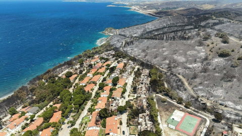 İzmir'in tatil merkezlerinden Seferihisar'da yeşil alanlar, yangın sonrası gri renge büründü