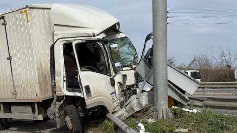 Kamyonet yön tabelasına ok gibi saplandı: 2 yaralı