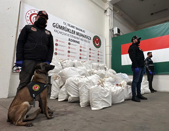 Umut IŞIK/EDİRNE, (DHA)- EDİRNE’de Bulgaristan’a açılan Kapıkule Sınır Kapısı’nda yurda giriş yapan TIR’da 492 kilo uyuşturucu ele geçirildi.Edime Gümrük Muhafaza Kaçakçılık ve İstihbarat Müdürlüğü ekipleri, yurda giriş yapan TIR’ı şüpheli ve riskli görmesi üzerine X-ray taramasına sevk etti. Aradan uzun süre geçmesine rağmen sürücü aracı taramaya götürmedi. Bunun üzerine araç muhafaza personeli refakatinde taramaya götürüldü. Burada şüpheli yoğunluk tespit edilen TIR’da, narkotik köpeği Ares ile yapılan aramada, 19 koli içerisinde, 411 vakumlu poşete gizlenmiş 492 kilo uyuşturucu ele geçirildi.Gözaltına alınan TIR şoförü ile ilgili soruşturma sürüyor. (DHA)