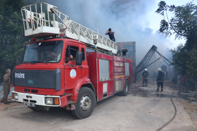 Mobilya fabrikası yangınında itfaiyeciler çöken duvarın altında kalmaktan son anda kurtuldu