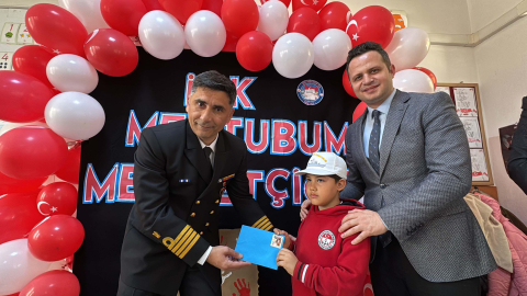 Cavit AKGÜN/MUĞLA, (DHA)- MUĞLA'da ilkokul 1'inci sınıf öğrencileri, 'İlk Mektubum Mehmetçiğe' projesi kapsamında, yurdun farklı yerlerinde vatani görevini yapan Mehmetçiğe mektup yazdı.Milli Eğitim ile Milli Savunma bakanlıkları iş birliğinde düzenlenen 'İlk Mektubum Mehmetçiğe' projesi ile okuma yazmayı yeni öğrenen 1'inci sınıf öğrencileri ile vatani görevini yapan Mehmetçik arasında mektuplaşma yoluyla iletişim kurulması amaçlandı. Milli birlik-beraberlik, vatan ve millet sevgisi, yurt savunması konularında farkındalıklarının artırılması hedefiyle yürütülen proje kapsamında; Muğla'nın Menteşe ilçesindeki Akçaova İlkokulu'nda etkinlik yapıldı. 1'inci sınıf öğrencileri, proje kapsamında yazdıkları ilk mektuplarını zarflayıp, Mehmetçiğe göndermek üzere, Aksaz Deniz Üs Komutanlığı'nda görevli askerlere teslim etti.Muğla İl Milli Eğitim Müdürü Emre Çay ve Menteşe Milli Eğitim Müdürü İdris Kömürcü ile müdür yardımcıları, okul yöneticileri ve öğretmenlerin hazır bulunduğu programda, askeri personel tarafından öğrencilere Türk bayrağı, şapka ve çeşitli hediyeler takdim edildi. (DHA)