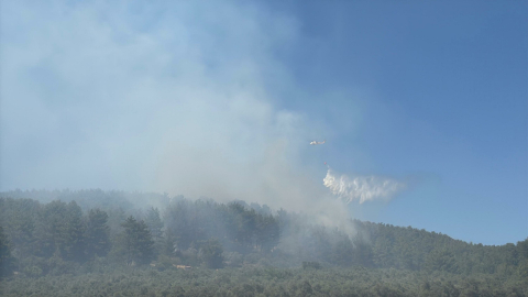 Cavit AKGÜN/MUĞLA, (DHA)- MUĞLA'nın Marmaris ilçesinde orman yangını çıktı. Alevlere havadan ve karadan müdahale ediliyor.Marmaris ilçesi Yeşilyurt Mahallesi Aldıran mevkiindeki ormanda saat 15.00 sıralarında yangın çıktı. Alevleri ve dumanları görenler durumu itfaiye ekiplerine bildirdi. İhbar üzerine bölgeye çok sayıda ekip sevk edildi. Alevlere havadan ve karadan müdahale ediliyor. (DHA)