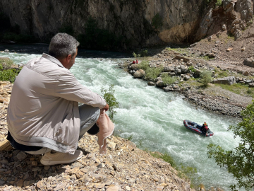 Yaşar KAPLAN/YÜKSEKOVA (Hakkari), (DHA)- HAKKARİ'nin Yüksekova ilçesinde pikniğe gittiği bölgede girdiği derede kaybolan İbrahim Kom'u (17) arama çalışmaları, 8'inci günde de sürüyor.Yüksekova'da yaşayan bir grup genç, geçen cumartesi piknik yapmak için ilçeye 55 kilometre uzaklıktaki Dağlıca bölgesine gitti. Gruptan 2 kişi, yüzmek için bölgedeki Avaşin Deresi'ne girdi. Bir süre sonra akıntıya kapılan gençlerden biri arkadaşları tarafından kurtarıldı, İbrahim Kom ise kayboldu. İhbar üzerine bölgeye sevk edilen jandarma, AFAD, UMKE ve itfaiye ekipleri, bölgede arama çalışması başlattı. Halkın da destek verdiği ilk günkü çalışmalardan sonuç alınamayınca Van'dan polis dalgıç ekibi ile Jandarma Komutanlığı JAK ekibi de bölgeye sevk edildi. Ankara’dan bölgeye sevk edilen JÖAK'a bağlı 18 kişilik dalgıç ekibi de Kom'un akıntıya kapıldığı noktadan itibaren çeşitli noktalarda zorlu arazi şartlarında dalışlar yapıyor. Arama çalışmaları bölgedeki ekiplerin katılımıyla sürüyor. (DHA)