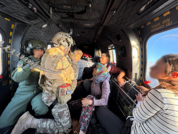 MAHSUR KALAN AİLE, HELİKOPTERLE TAHLİYE EDİLDİİzmir'in Ödemiş ilçesindeki orman yangınında mahsur kalan aile, Hava Kuvvetleri Komutanlığı tarafından kurtarıldı. Milli Savunma Bakanlığı'nın sosyal medya hesabından yapılan açıklamada, "İzmir'in Ödemiş ilçesi Tosunlar köyünde çıkan yangında mahsur kalan 4 kişilik aile, Hava Kuvvetleri Komutanlığımız tarafından kurtarıldı. Hava Kuvvetleri personelimiz, kurtardıkları ailemizi helikopter ile güvenli bir şekilde tahliye ederek sağlık ekiplerine teslim etti" denildi. (DHA)