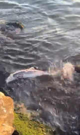 Kazım BULUT/GEMLİK (Bursa), (DHA)- BURSA’nın Gemlik ilçesinde ölü yavru yunus balığı kıyıya vurdu. Ölü yavru balık, Gemlik Belediyesi Sağlık İşleri Müdürlüğü Veteriner Hizmetleri ekipleri tarafından incelemeye alındı.Gemlik ilçesinde, sahile ölü yavru yunus balığı vurdu. Denizde rüzgar ve dalgaların etkisiyle kıyıya kadar sürüklendiği sanılan yunusun orkinos olduğu düşünülürken, balıkçılardan alınan bilgiye göre, yavru yunus balığı olduğu, farklı zamanlarda benzer durumların yaşandığı öğrenildi. Gemlik Belediyesi Sağlık İşleri Müdürlüğü Veteriner hizmetleri ölü yavru yunus balığını incelemeye aldı. (DHA)