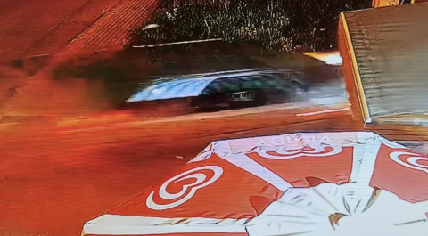 Otomobil caminin duvarını yıkıp içeri girdi; kaza kamerada