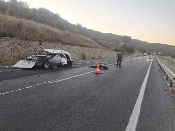 Otomobil, istinat duvarı ile başka araca çarptı; 1 ölü 1 yaralı / Ek fotoğraf