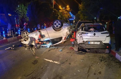 Otomobil refüje, ardından da park halindeki araca çarptı: 2’si ağır, 5 yaralı