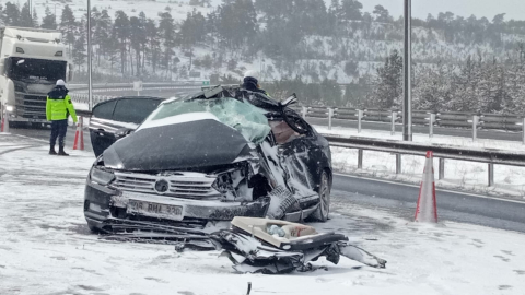 Otomobil tankere çarptı; 1'i polis, 2 kişi hayatını kaybetti / Ek fotoğraflar